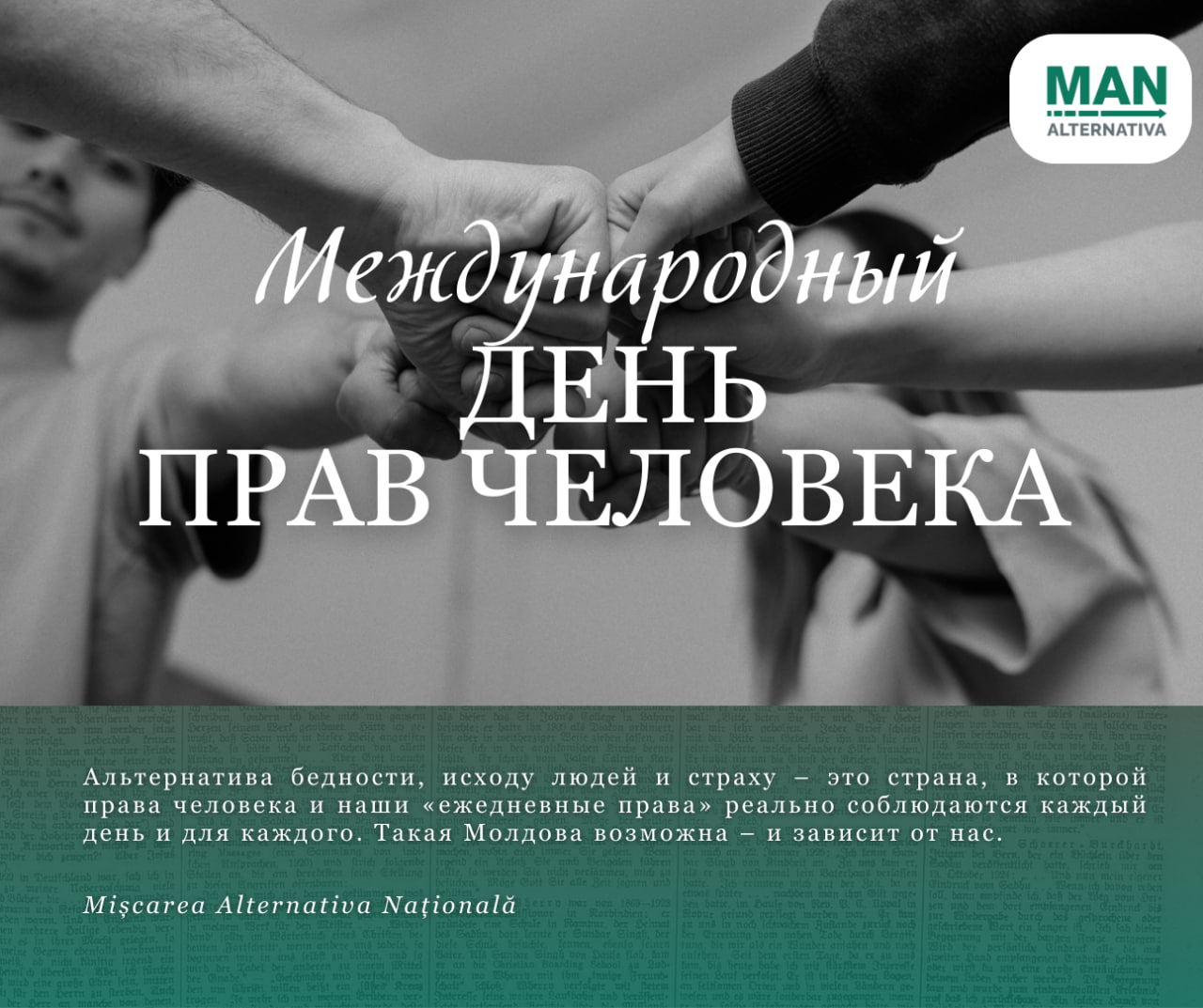 ОФИЦИАЛЬНОЕ ЗАЯВЛЕНИЕ ПАРТИИ НАЦИОНАЛЬНОЕ АЛЬТЕРНАТИВНОЕ ДВИЖЕНИЕ (MAN) ПО СЛУЧАЮ МЕЖДУНАРОДНОГО ДНЯ ПРАВ ЧЕЛОВЕКА
